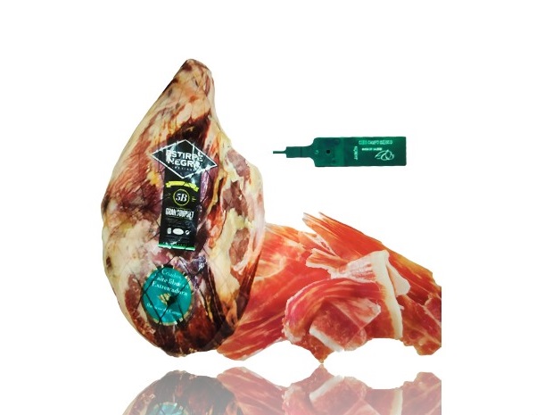 Los Jamones Ibéricos 5B ESTIRPE NEGRA proceden de cerdos ibéricos en explotaciones ganaderas de Extremadura, criados en régimen semiextensivo. Son fruto de un proyecto de mejora continua de dieciocho años de duración trabajando conjuntamente con criadores de cerdo ibérico contratados y controlados. Los Jamones Ibéricos ESTIRPE NEGRA 5B tienen la grasa más fluida y saludable, más veteado, mejor aroma, sabor suave e intenso, poco salado y una textura fina. Origen: Fregenal de la Sierra (Badajoz) Peso: 5kg-5,5kg Aprox.