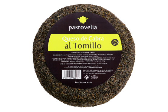 | INGREDIENTES | Leche pasterizada de cabra, sal, cuajo, cloruro cálcico, fermentos y tomillo en corteza. Origen de la leche: España |